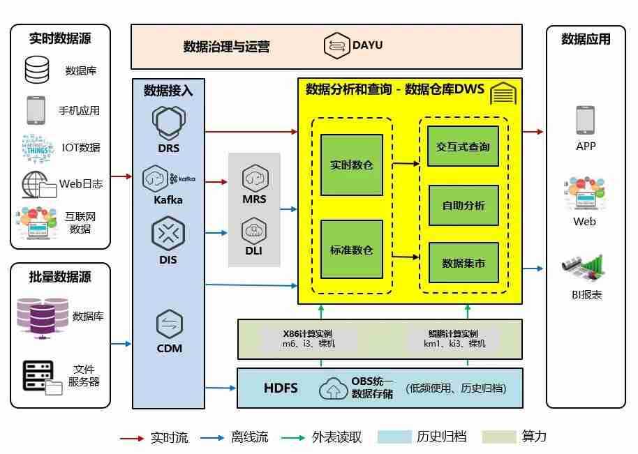 交通银行数据仓库(DWS)采用代理管理网鲲泰R722服务器作为数据底座,,,采用MPP(Massive Parallel Processing)架构,,,支持行存储与列存储,,提供PB(Petabyte,,2的50次方字节)级别数据量的处理能力。。。